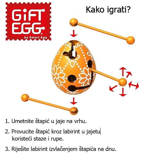 Narančasto uskršnje jaje: posebna slagalica labirint koja se koristi kao igračka iznenađenja za djecu u lovu na uskršnja jaja i kao uskršnja dekoracija, zamotana na dar, spremna za darivanje kao uskrsni dar