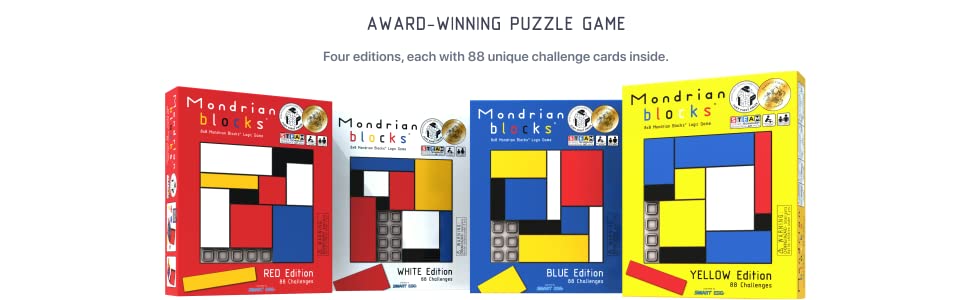 ŠTO JE Mondrian Blocks? Nagrađivana puzzle igra. Izazovite svoje fleksibilno razmišljanje i vještine rješavanja problema. Kutija sadrži ploču, 11 kocki i 88 različitih kartica izazova (odvojenih u 4 stupnja težine) u svakom izdanju.