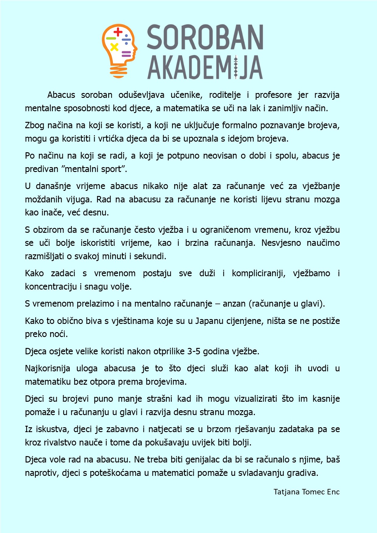 najprestižnija škola abacusa sorobana u ovom dijelu Europe.