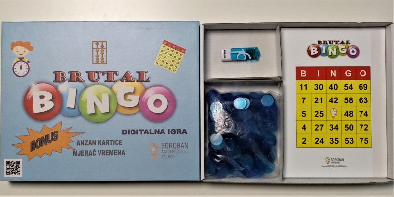 Brutal BINGO, digitalna igra za mentalni trening. Sastoji se od igre BRUTAL BINGO, mjerača vremena - tajmera, prikaza brojeva na abakusu, primjera računskih operacija i flash anzana (zadataka za mentalnu aritmetiku). Čarobne kartice za učenje i trening anzana i vizualizaciju brojeva. Komplet je za 25 sudionika. Program je na USB prijenosnoj memoriji.
